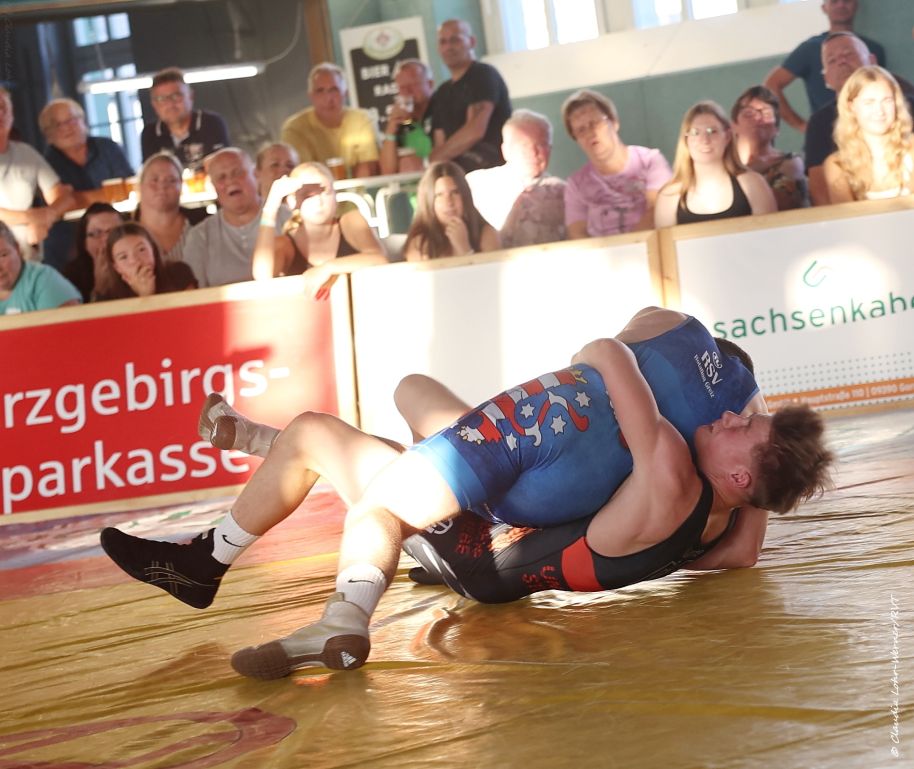 Abgesehen von John-Luca Koch gleich im ersten Duell des Abends gaben sich auch die anderen Thalheimer gegen die Niedersachsen keine Blöße. Drei Schultersiege fuhren die Gastgeber durch Oleg Bartel, Dominik Jagusz und Michal Zelenka ein. Auch Finn Kühn siegte vorzeitig, nachdem sein Kontrahent wegen wiederholter Beinarbeit in der Bodenlage disqualifiziert wurde. „Gute Ansätze waren bei den Hannoveranern durchaus zu erkennen. Einige lagen in ihren Kämpfen sogar zeitweise in Führung“, so Richter. Doch dann seien ihnen regelmäßig die Puste ausgegangen. „Wir hatten die bessere Kondition, das war ausschlaggebend. Dank des Sieges kletterten die Thalheimer auf Tabellenplatz drei.