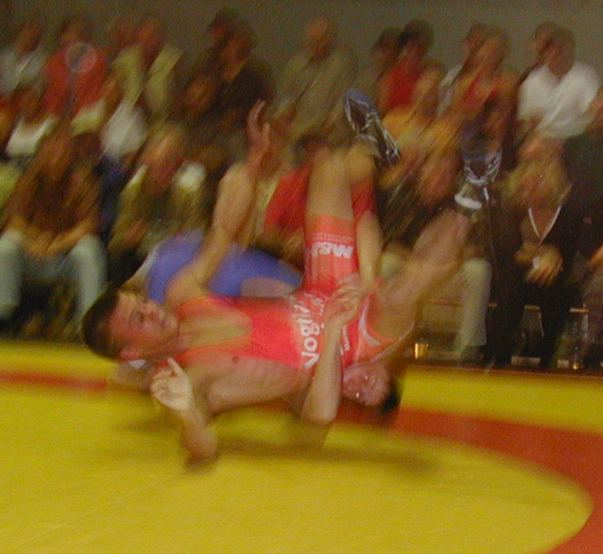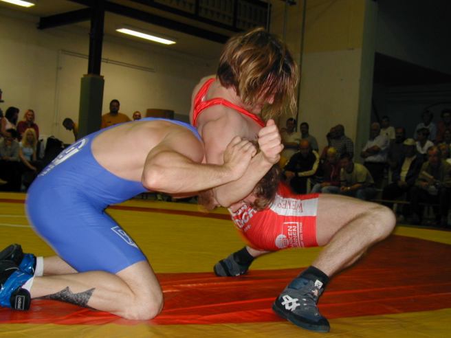 Ralph Piterek in seinem Freistil-Duell bis 74 kg bot. Den