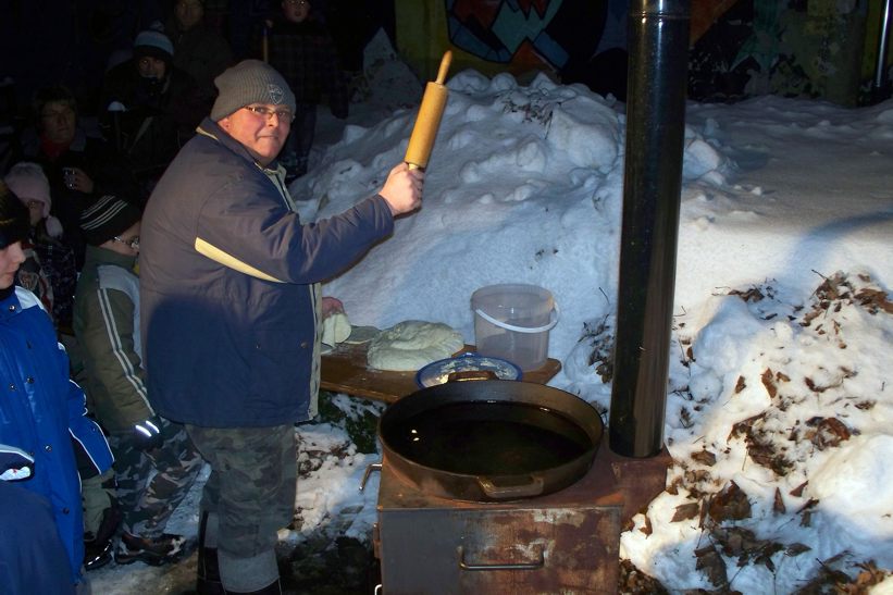 Stürmer am Donnerstagabend im Außengelände des Thalheimer Vereinshauses eine Vielzahl von leckeren Lángos für die