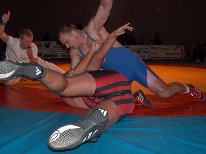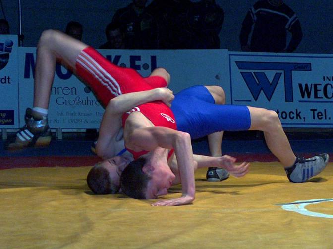 Zu einem 3:0-Punktsieg kam Sebastian Weckener (66 kg, Freistil) gegen Dominic Gerber, nachdem er seinen Kontrahenten schon beinahe auf Schultern gehabt hätte. Nun versuchte Holger Hähnel im griechisch-römischen Stil des Mittelgewichts, so viele Punkte wie möglich zu machen. Ein Überlegenheitserfolg war dem Thalheimer gegen Klaus Pistol nicht vergönnt, am Ende hieß es nach mehreren Bodenrollen 11:1, so dass drei Mannschaftspunkte an den RVT gingen.