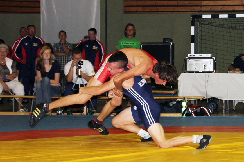 Erst im allerletzten Kampf des Abends banden die Gäste aus dem Zwönitztal den Sack endgültig zu. Dominic Förster im klassischen Stil bis 74 Kilogramm machte mit einem souverän herausgeholten Sieg nach technischer Überlegenheit gegen den defensiven Adrian Weber alles klar. Toller Wurf von Dominic Förster gegen Adrian Weber. (KLICK zum Vergrößern!)Der Sieg des RVT kann letztlich als verdient bezeichnet werden, da sechs der zehn Einzel-Vergleiche auf das Konto der Gäste gingen. Insbesondere in den unteren Gewichtsklassen waren die Drei-Tannen-Städter kaum zu bezwingen. Bis einschließlich dem Weltergewicht gab es nur eine Niederlage.