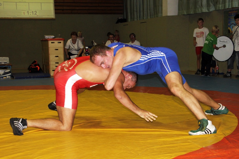 Die Lugauer kamen jedoch durch ihre starken Athleten in den oberen Limits jedes Mal wieder heran. So gewann ein starker Victor Pucala (120 kg, klassisch) ungefährdet gegen Stefan Mothes, Tomas Voboril (96 kg, Freistil) profitierte von der Verletzungs-Aufgabe Rüdiger Möhrings, die durch einen unglücklichen Zusammenprall entstand. Zunächst sah es beim 54-jährigen Oldie auf Seiten der Zwönitztaler gar nicht gut aus, stark benommen schien der Ausnahme-Athlet. Wie hart im Nehmen man auch in diesem Alter sein kann, zeigte „Möhre“ am Ende, als er sich wieder topfit mit den Fans unterhielt.