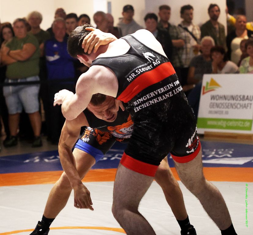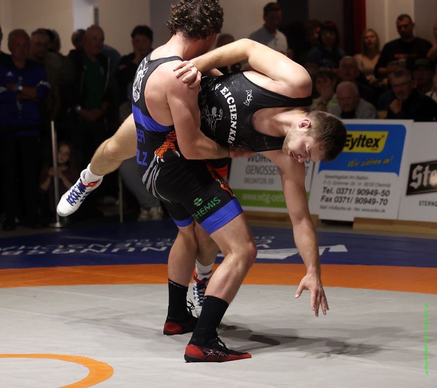 Auch dank ihm waren die Gäste bis zur Pause auf 6:8 herangekommen. Im zweiten Durchgang hatten die Lugauer dem entfesselten RVT dann nicht mehr viel entgegenzusetzen. Selbst der so starke Szymon Wojtkowski schaffte es entgegen seiner sonstigen Gewohnheit diesmal nicht, seinen Kontrahenten vorzeitig zu bezwingen. Leon Kolbe hielt erbittert gegen und gestattete dem Polen nur drei Punkte für die Mannschaftswertung – es waren die letzten Zähler, die die Gastgeber für sich verbuchen konnten. Moritz Frey, Leon Blachut und Toni Peprny blieben gegen die Thalheimer Finn Kühn, Dominik Jagusz und Marek Vrba chancenlos. Und auch Konrad Kozlowski hatte im letzten Kampf des Abends, als der Mannschaftsvergleich schon entschieden war, nichts zu bestellen.