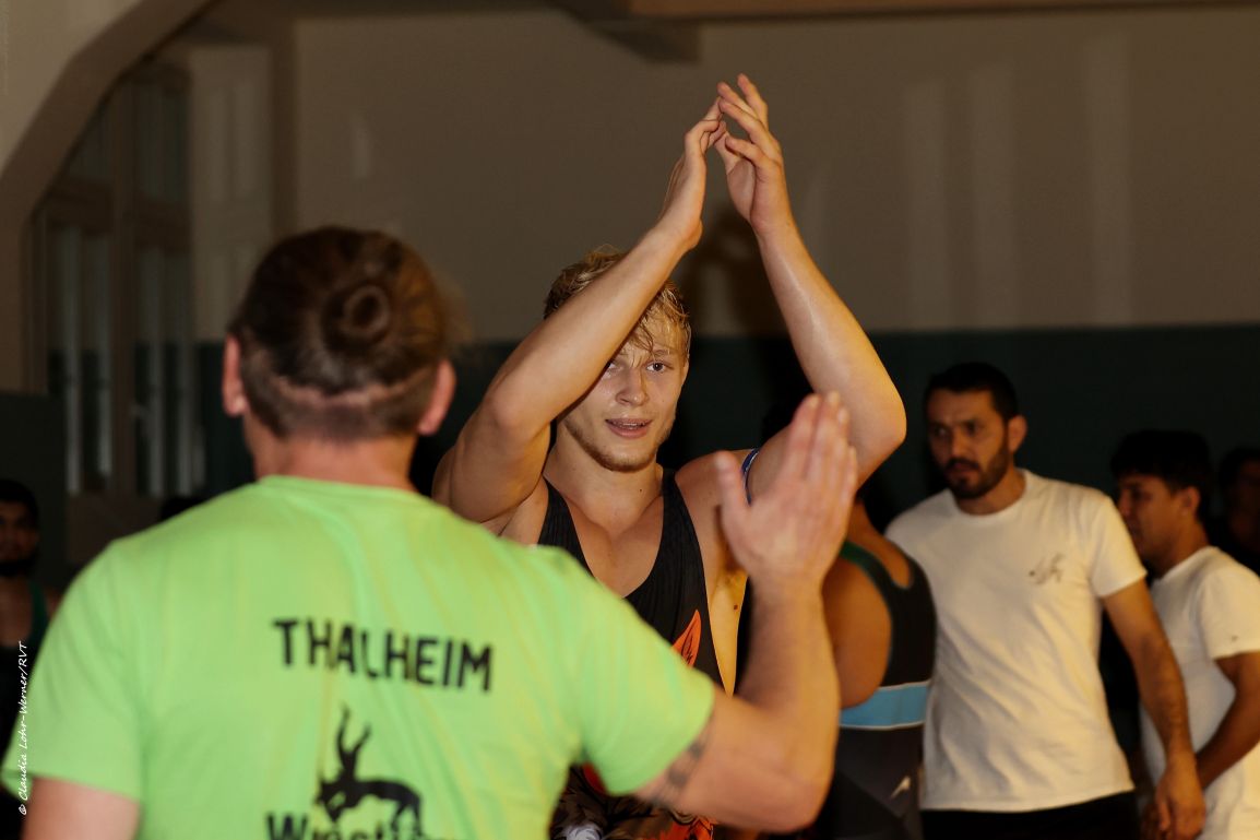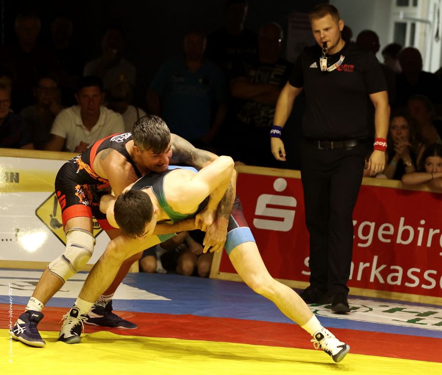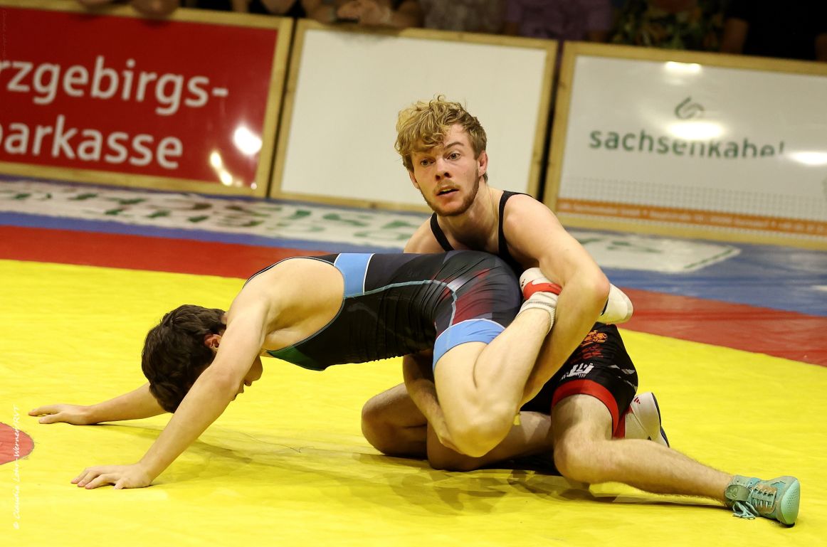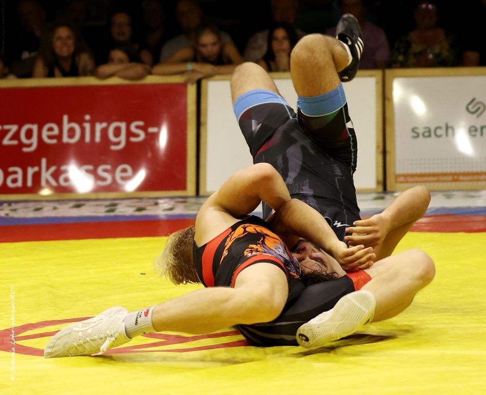 Abgesehen von John-Luca Koch gleich im ersten Duell des Abends gaben sich auch die anderen Thalheimer gegen die Niedersachsen keine Blöße. Drei Schultersiege fuhren die Gastgeber durch Oleg Bartel, Dominik Jagusz und Michal Zelenka ein. Auch Finn Kühn siegte vorzeitig, nachdem sein Kontrahent wegen wiederholter Beinarbeit in der Bodenlage disqualifiziert wurde. „Gute Ansätze waren bei den Hannoveranern durchaus zu erkennen. Einige lagen in ihren Kämpfen sogar zeitweise in Führung“, so Richter. Doch dann seien ihnen regelmäßig die Puste ausgegangen. „Wir hatten die bessere Kondition, das war ausschlaggebend. Dank des Sieges kletterten die Thalheimer auf Tabellenplatz drei.
