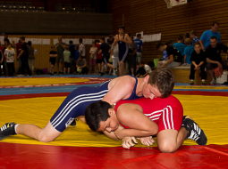 LADENBURG/DRESDEN – Beim größten Ringer-Wettkampf Deutschlands holten sich die Altkreisvereine aus Thalheim und Lugau im nordbadischen Ladenburg fünf Goldmedaillen. Der 20. Römercup und die 15. Ladies Open, die am Wochenende in der dortigen Lobdengauhalle ausgetragen wurden, sah über zwei Tage zusammen 1084 Einzel-Duelle auf den Matten.