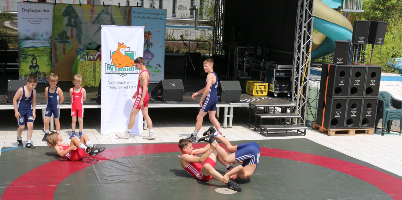 „Als es früh am Morgen regnete wie aus Eimern, hätten wir uns nicht vorstellen können, was unser Kinder- und Familienfest für eine tolle Veranstaltung werden würde. Obwohl in der Region so einiges los war, strömten bereits vor offiziellem Beginn neugierige Gäste ins ehemalige Erzgebirgsbad.“ – so schreibt der Thalheimer Stadtanzeiger über das Kinder- und Familienfest am 17. Juni. Mit dabei waren auch die Jungs vom RV Thalheim, die mit einem Schau-Training das Fest eröffneten.