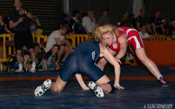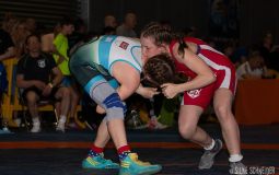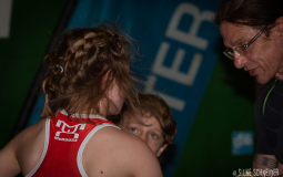 Emilie Haase (53 kg) absolvierte ihren ersten Wettkampf nach einer langen Verletzungspause und meldete sich bei diesem Comeback ganz stark zurück. Gegen Heidi Morjan (AC Ückerath, NRW) gelang ihr ein sicherer Schultersieg. Im zweiten Duell hieß ihre Gegnerin Maren Vornberger (AC Röhlingen, Württemberg), amtierende Deutsche Vizemeisterin der Junioren. Emi gestalltete diesen Kampf sehr konzentriert und konnte einen niemals gefährdeten, 8:1-Punktsieg erkämpfen. Insgesamt Gold für die Europameisterin der Kadettinnen von 2016 – eine ganz starke Leistung, die nach dieser langen Verletzungspause sicherlich nicht selbstverständlich war.