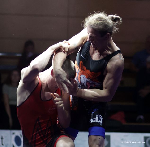 Nach der Halbzeit kämpfte Leon Lange (71 kg) im ungeliebten Freistil, da Florian Pohl erneut verletzungsbedingt pausieren musste. „Er hat sich ganz stark gegen die drohende vorzeitige Niederlage gewehrt“, lobte Steffen Richter. Gegen den starken Malte Guthmann wurde es so am Ende „nur“ ein 0:3. Hoffnung gab’s anschließend wieder durch Kevin Mehlhorn, der den Leipziger Trainer Kirk Haupt nach nur 30 Sekunden per Kopfschleuder ausknockte.